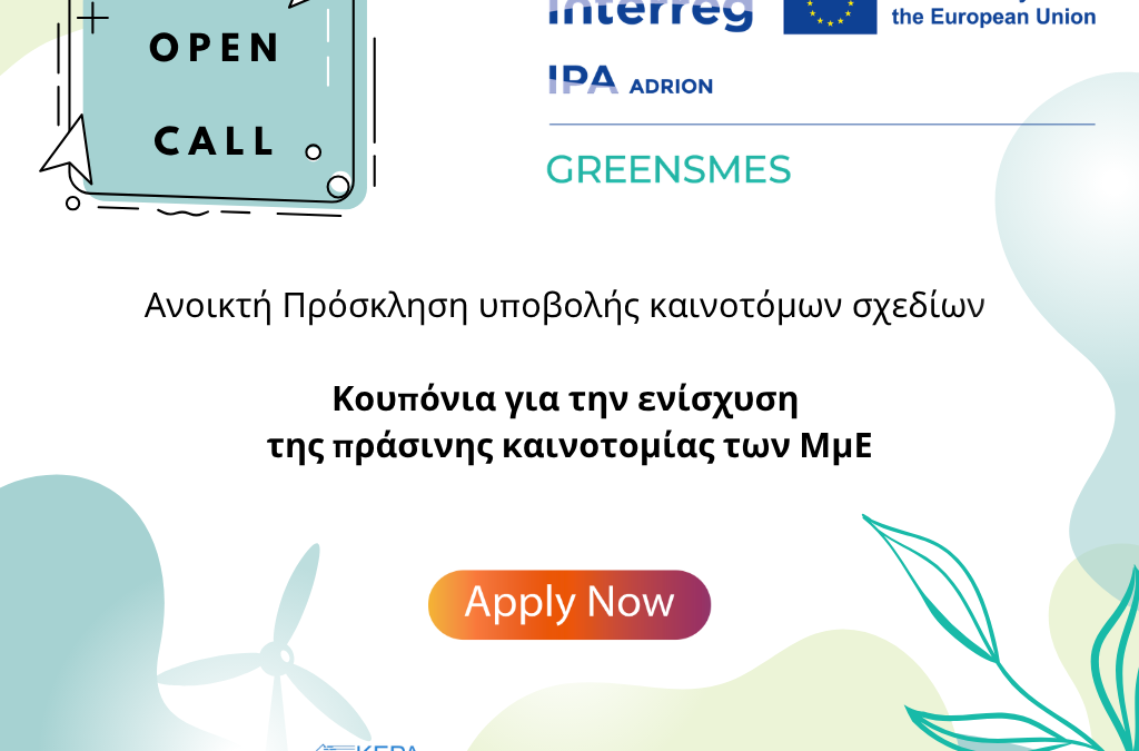 Ανοικτή Πρόσκληση υποβολής καινοτόμων σχεδίων – Κουπόνια για την ενίσχυση της πράσινης καινοτομίας των ΜμΕ